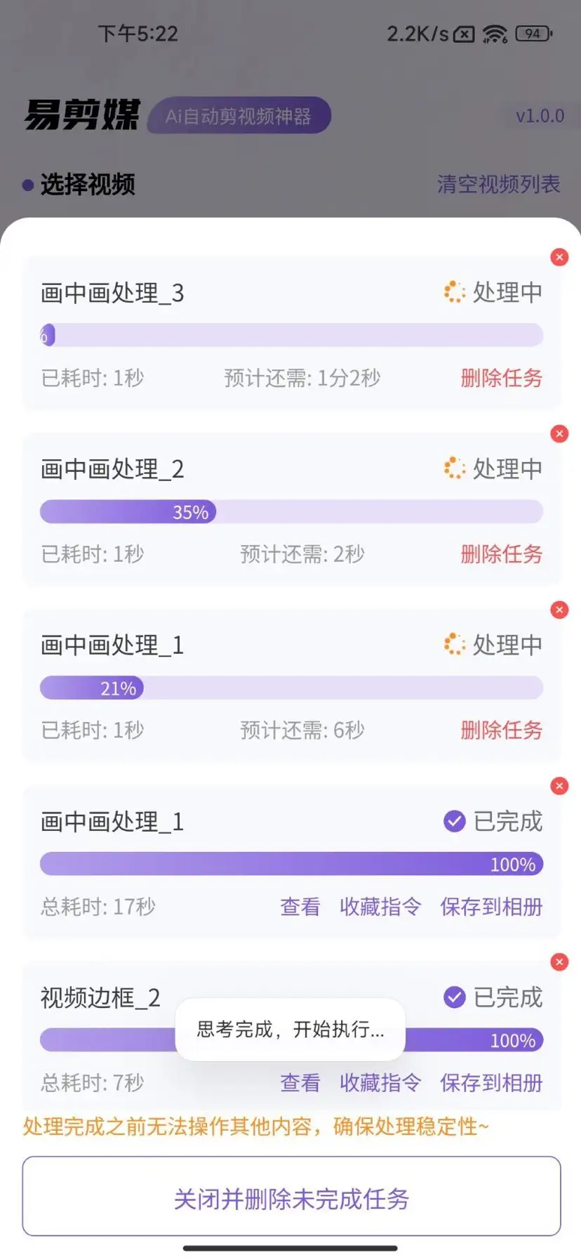 - 多线程运行:利用多线程技术,同时处理多个视频任务,提升处理效率。