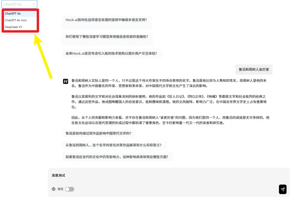 其主要特色包括支持多达 60 种语言,这使用户能够轻松浏览和理解较小和不常用语言的内容。无论您是探索全球网站还是分析文档,Heck.ai 都提供了强大的支持。