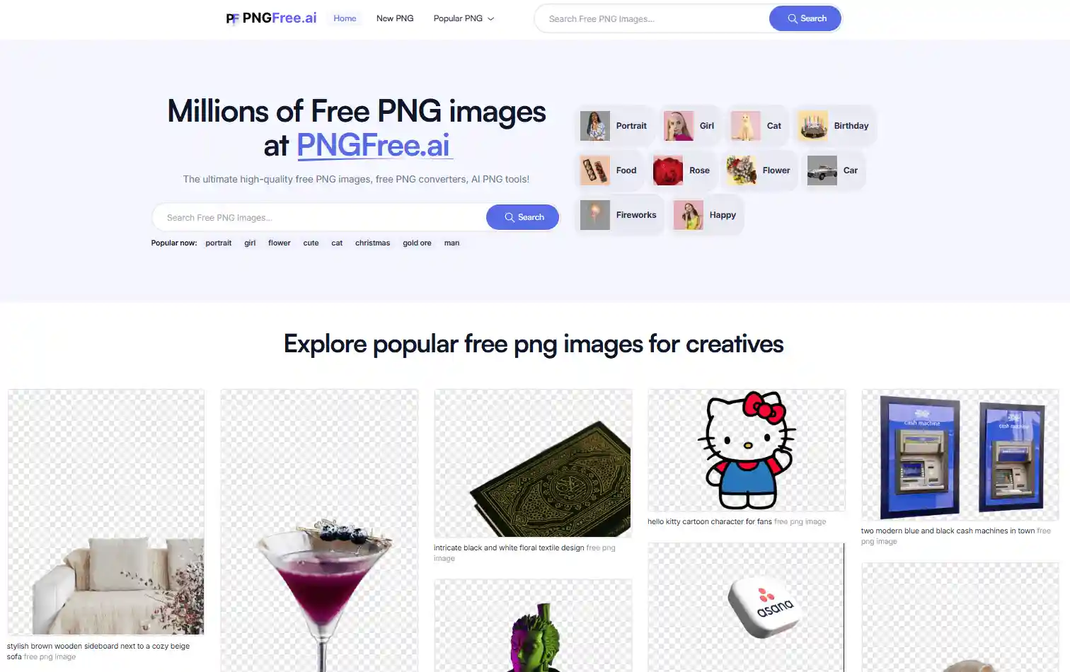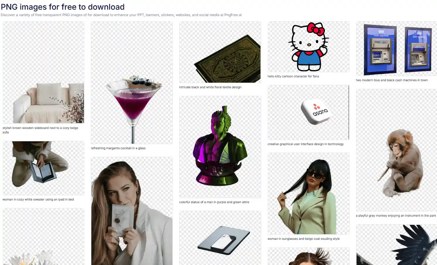 一个免费的 PNG 图片下载网站,里面提供的图片种类全面丰富,而且无需注册登录即可直接下载,下载到本地的图片高清无水印。网站在国外,但是使用起来没什么障碍,打开速度也挺快的,免费免登陆即可使用,上面的素材也很丰富,可以放心使用。