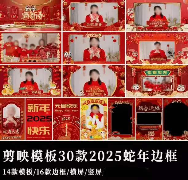 这是一份剪映模板,共计30款2025年蛇年新春拜年祝福视频边框,支持剪映软件使用。